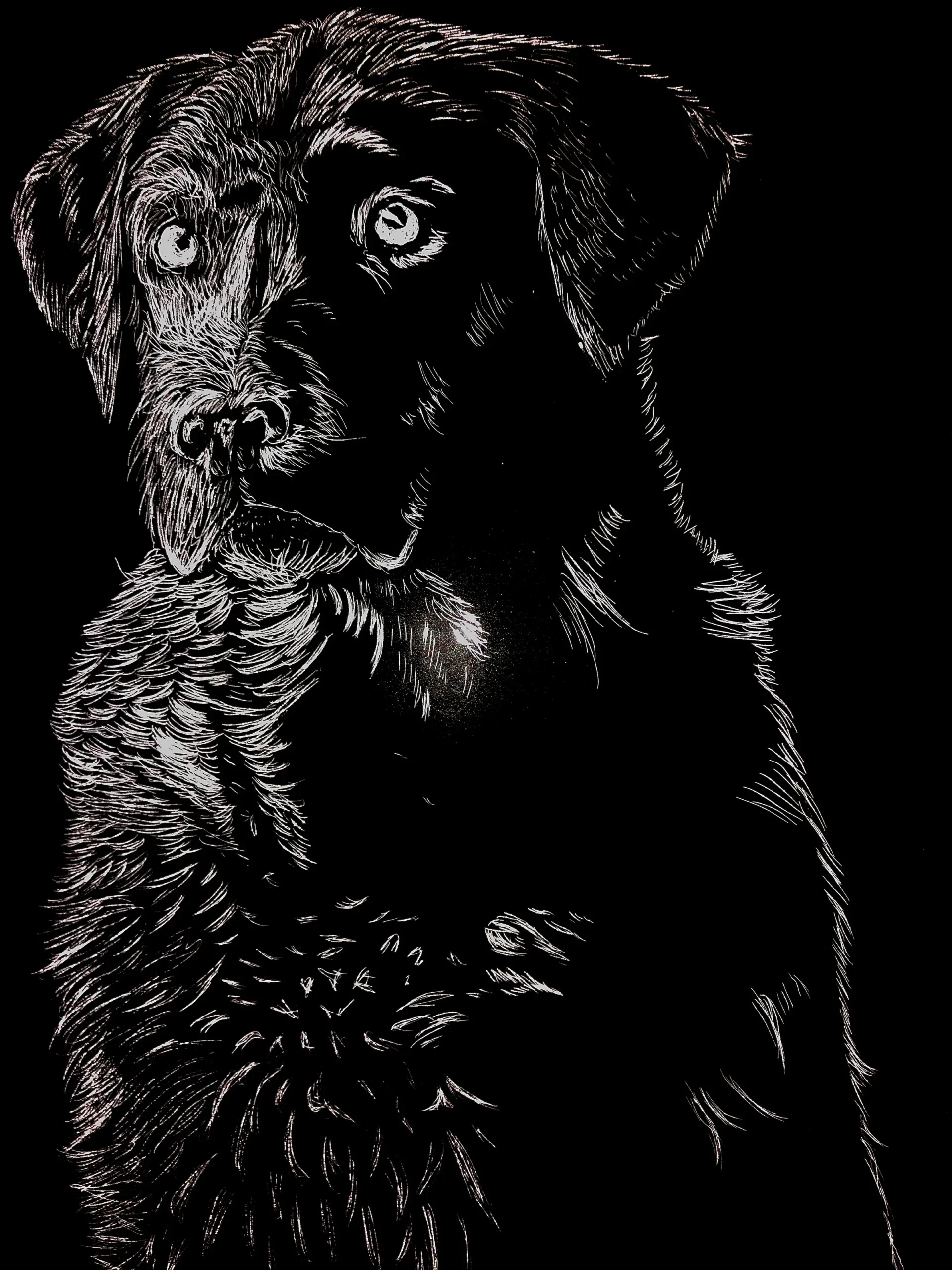 Scratchboard Portrait of a single Animal or Pet.